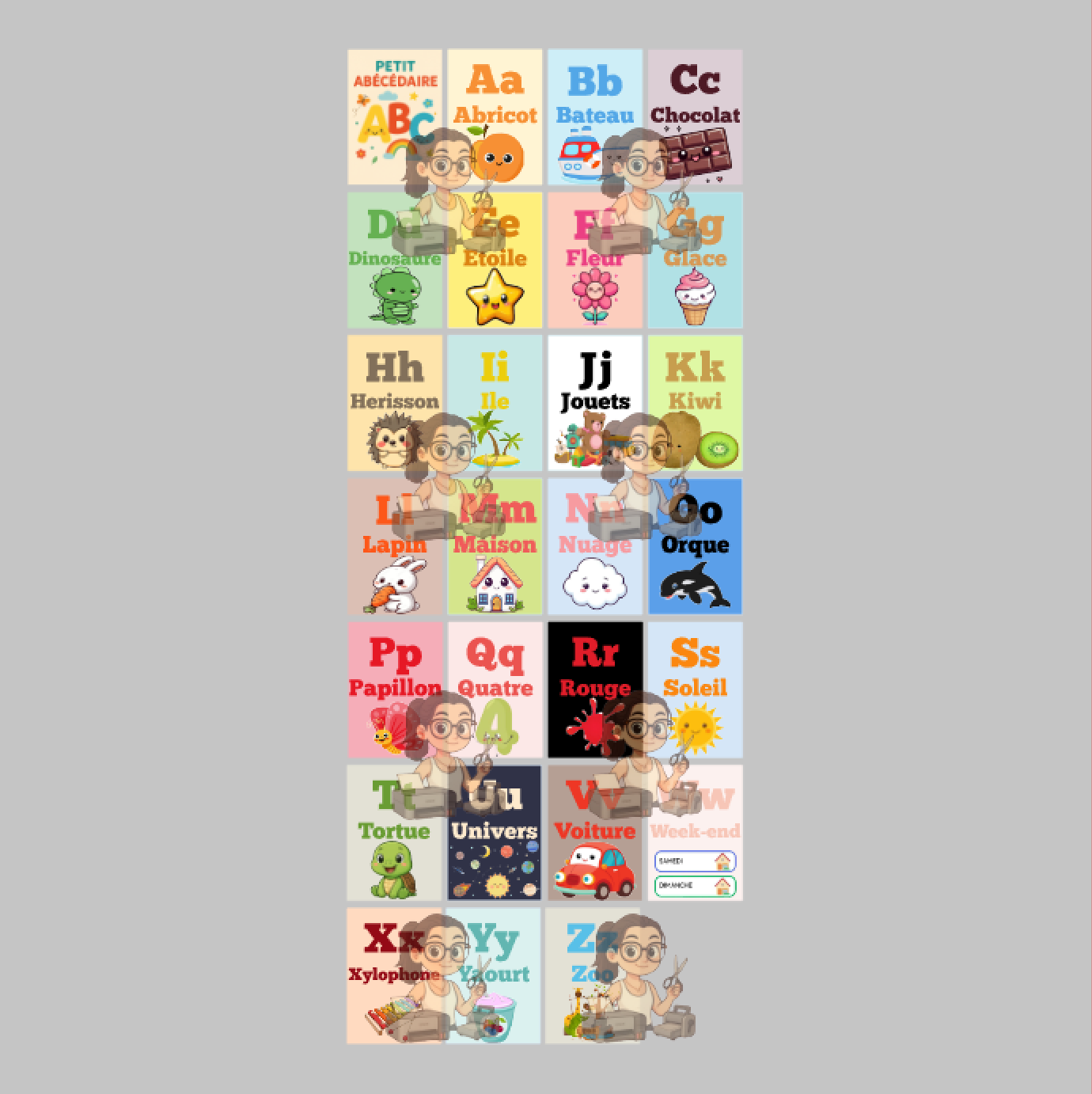 📄 Contenu : 26 cartes alphabet + 1 couverture